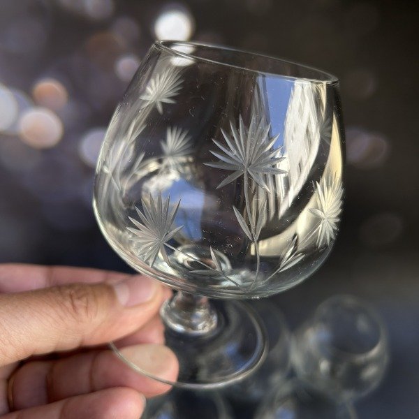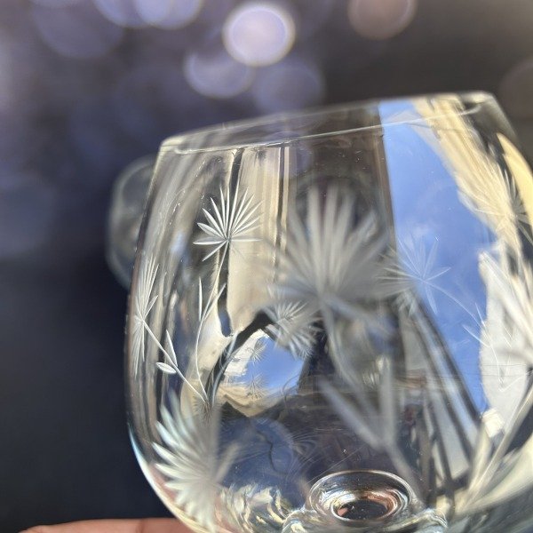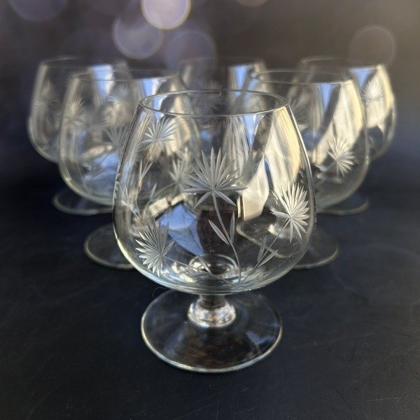 Espectacular juego de copas de cognac en vidrio fino talladas en impecable estado.