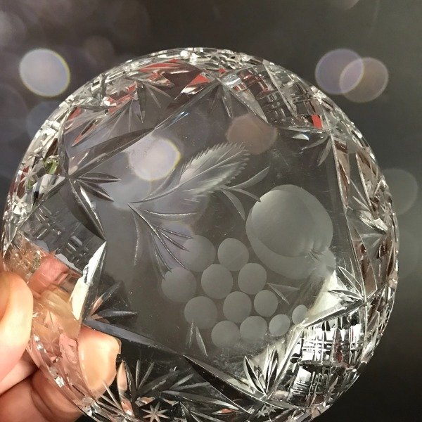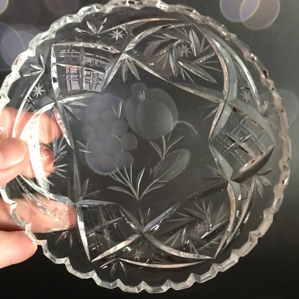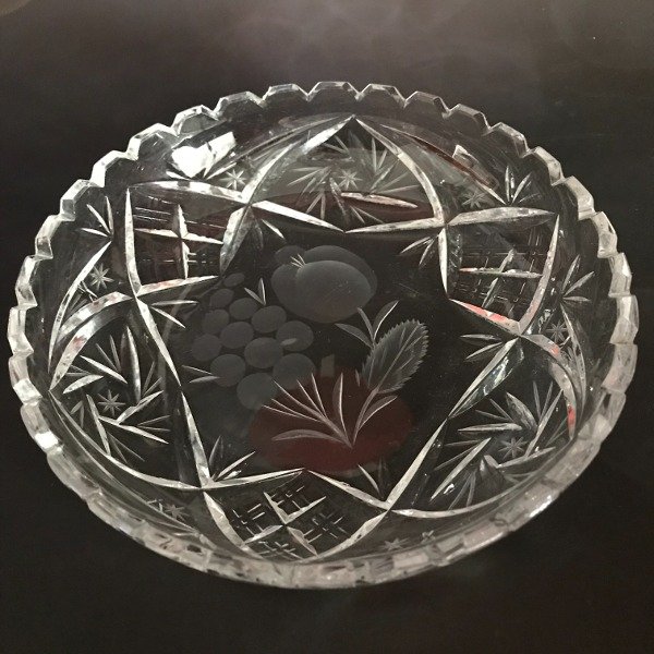 Es una pieza divina con el centro tallado al ácido en forma de frutas.