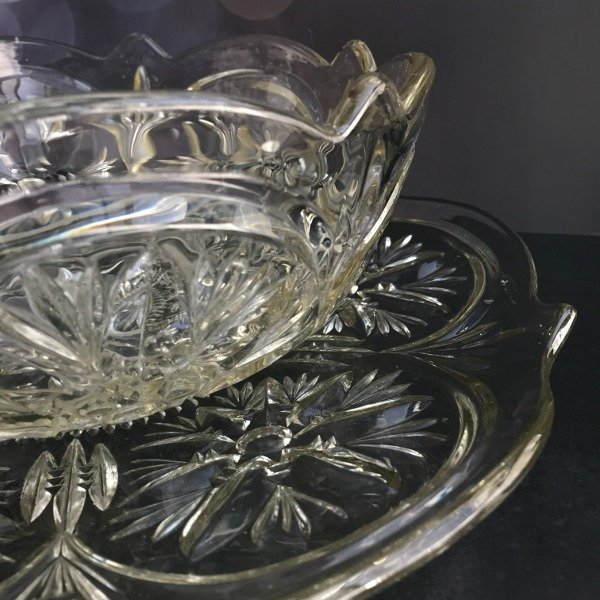 Excelente es a ladera con fuente de vidrio prensado excelente estado industria argentina