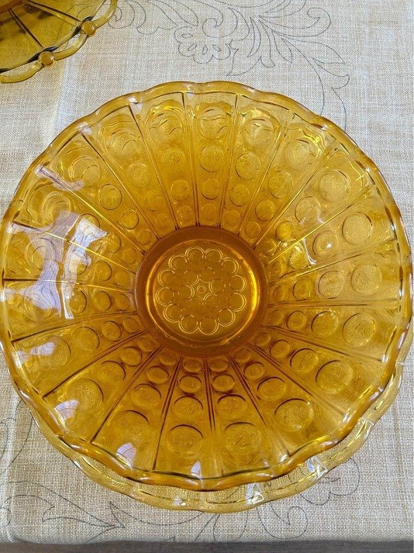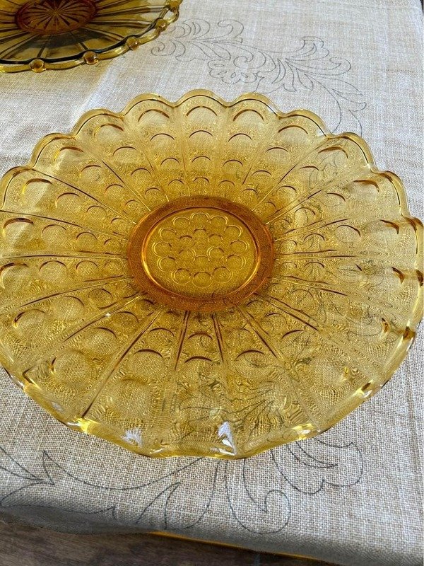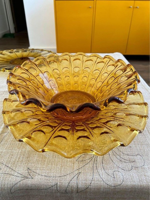 Excelente par de fuentes de vidrio en color ámbar en excelente estado.
