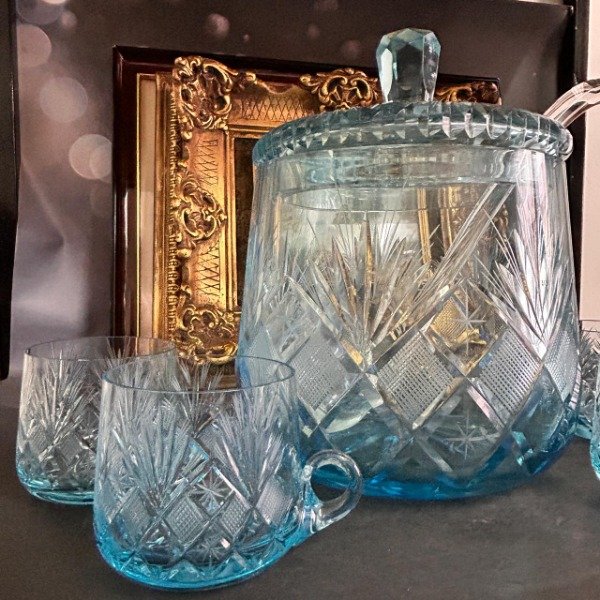 Excepcional ponchera de cristal tallado en impecable estado.