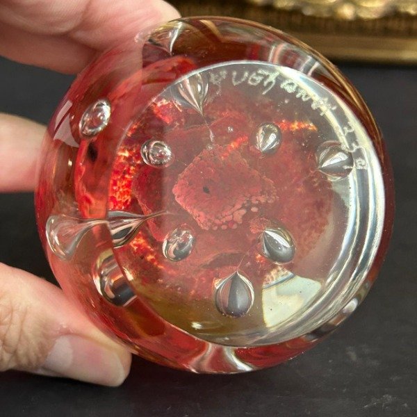 🌟 Fabulosa pieza QUERANDI firmada 🌟 Morcable 🌟 Sin chips ni cachaduras 🌟 El diseño es excelente en tonos rojos con burbujas 🌟 La base está firmada “QUERANDI 339” 🌟 Mide 10cm de alto y 7cm de diametro 🌟