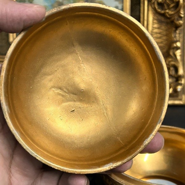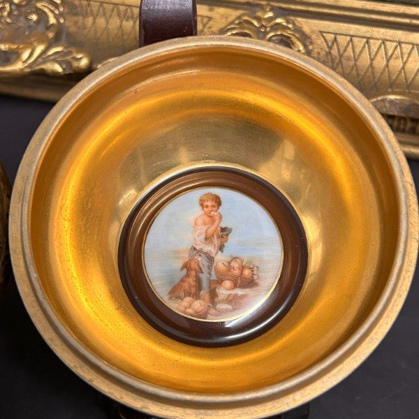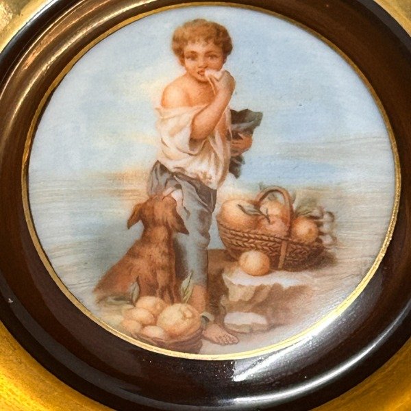 🌟 El interior es dorado con l imagen del niño con frutas enmarcado en color marrón 🥰