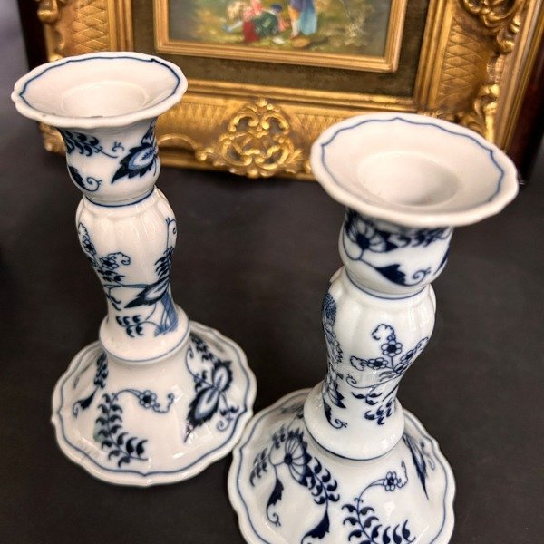 Par de candelabros de porcelana en impecable estado.