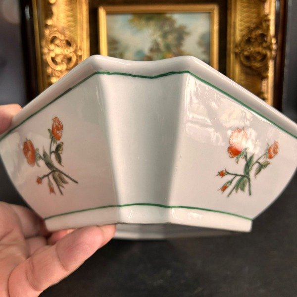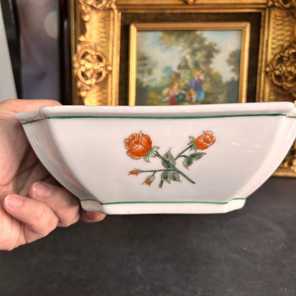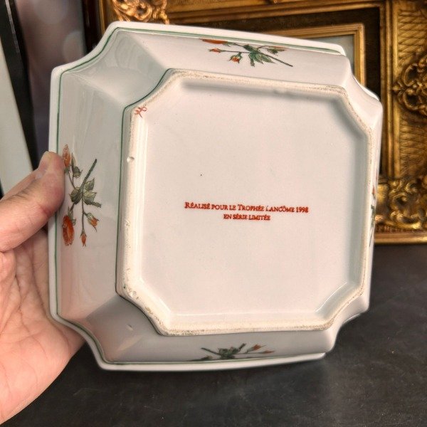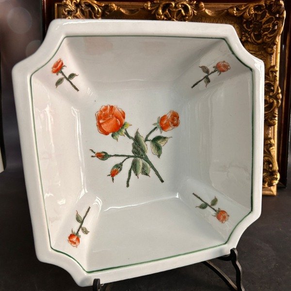 Excelente centro cuadrado de loza francesa en impecable estado.