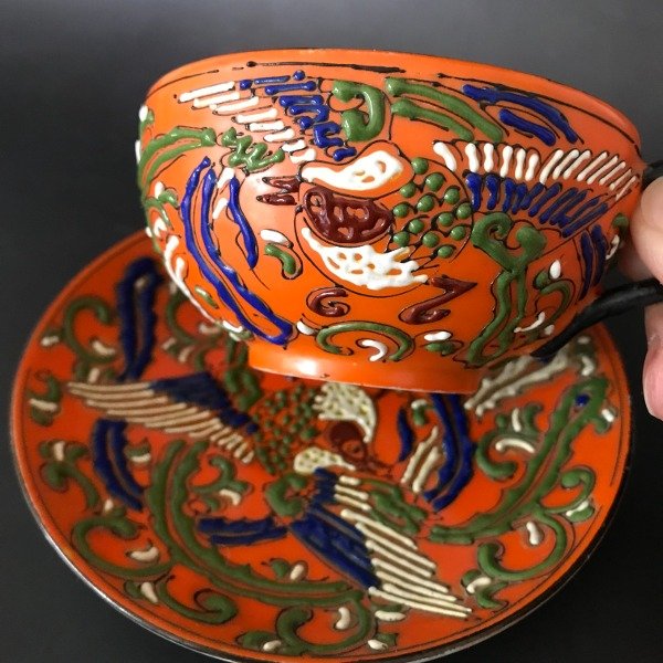 La taza mide 5cm de alto y 9,5cm de diámetro. Buena capacidad para un té.
