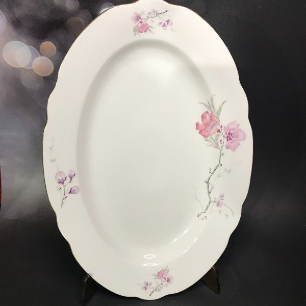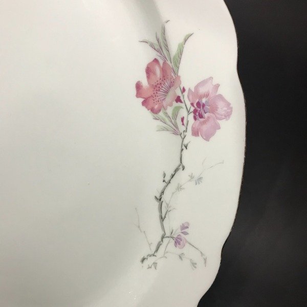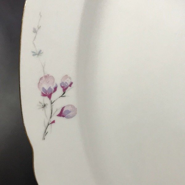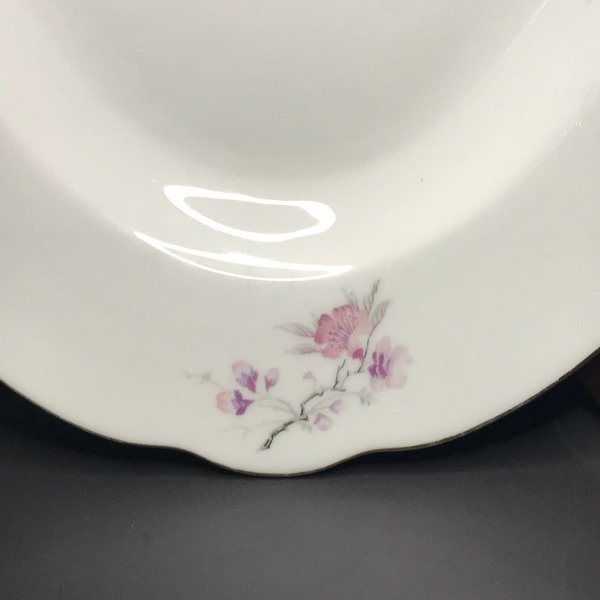 El diseño de flores es súper delicado y el borde tiene una virola dorada que realza la pieza.