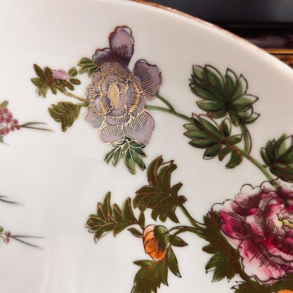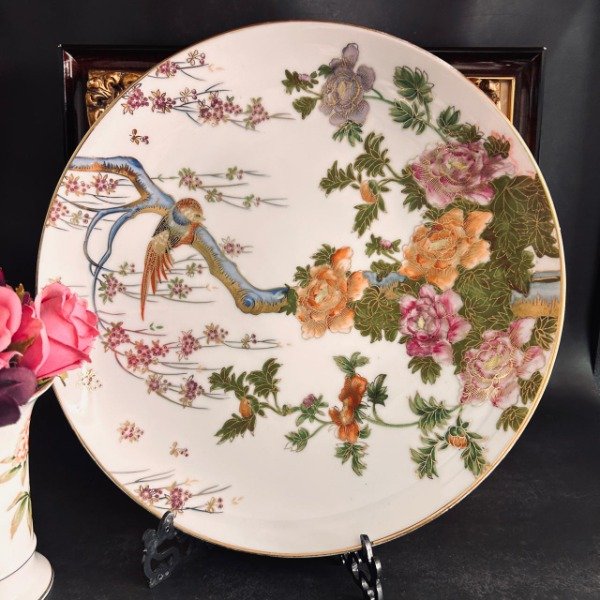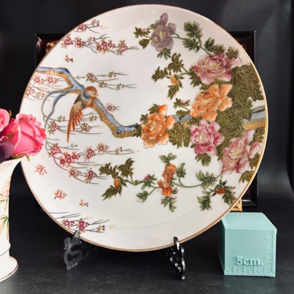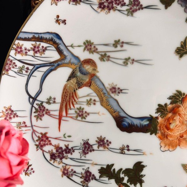 🌟 El diseño es de un pájaro posado sobre una rama con flores en bordo, naranja y violeta 🌺