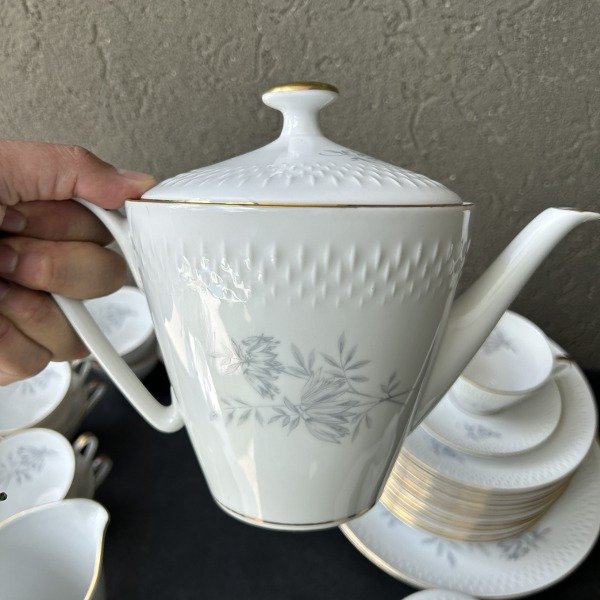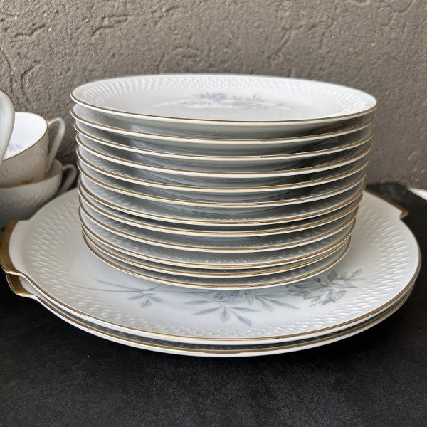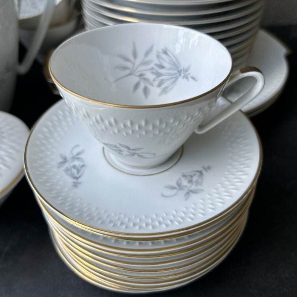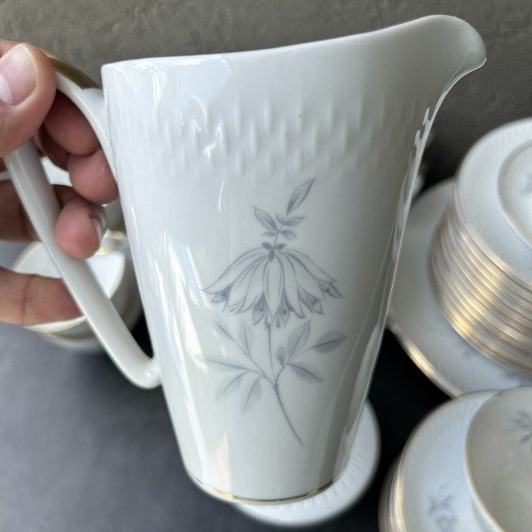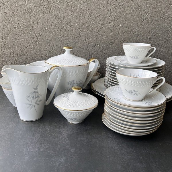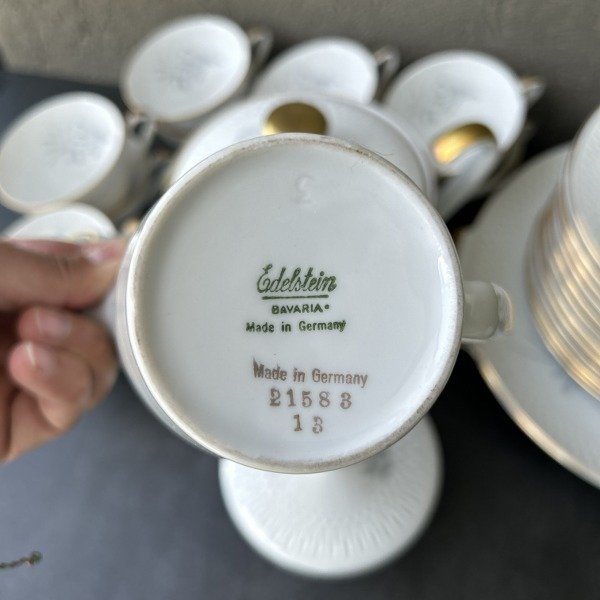 Excepcional juego de té de porcelana alemana Edelstein para doce personas en impecable estado.