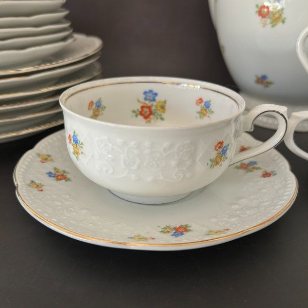 Este Juego de Té en Porcelana Bavaria es una pieza excepcional de alta calidad, perfecta para los coleccionistas y amantes de las antigüedades. Con su diseño refinado y su excelente estado de conservación, este juego es un verdadero tesoro que reflejará el lujo y la tradición de la famosa marca alemana Bavaria.