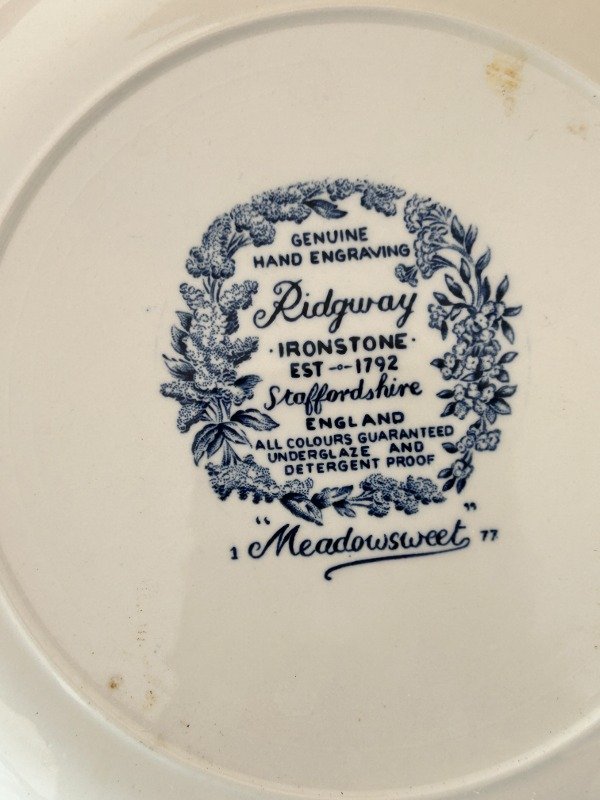 Excepcional plato de loza inglesa Ridgway en impecable estado.