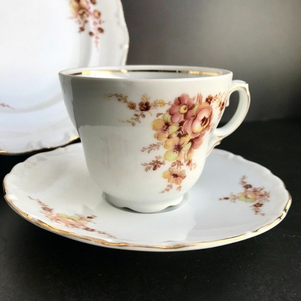 Este **Trío de Té en Porcelana Alemana** es una pieza de refinada calidad, perfecta para los coleccionistas y aficionados a las antigüedades. Fabricado con la destreza y precisión que caracterizan la porcelana alemana, este conjunto combina funcionalidad y belleza, ideal para disfrutar de una tarde de té o para ser exhibido como una pieza de colección.